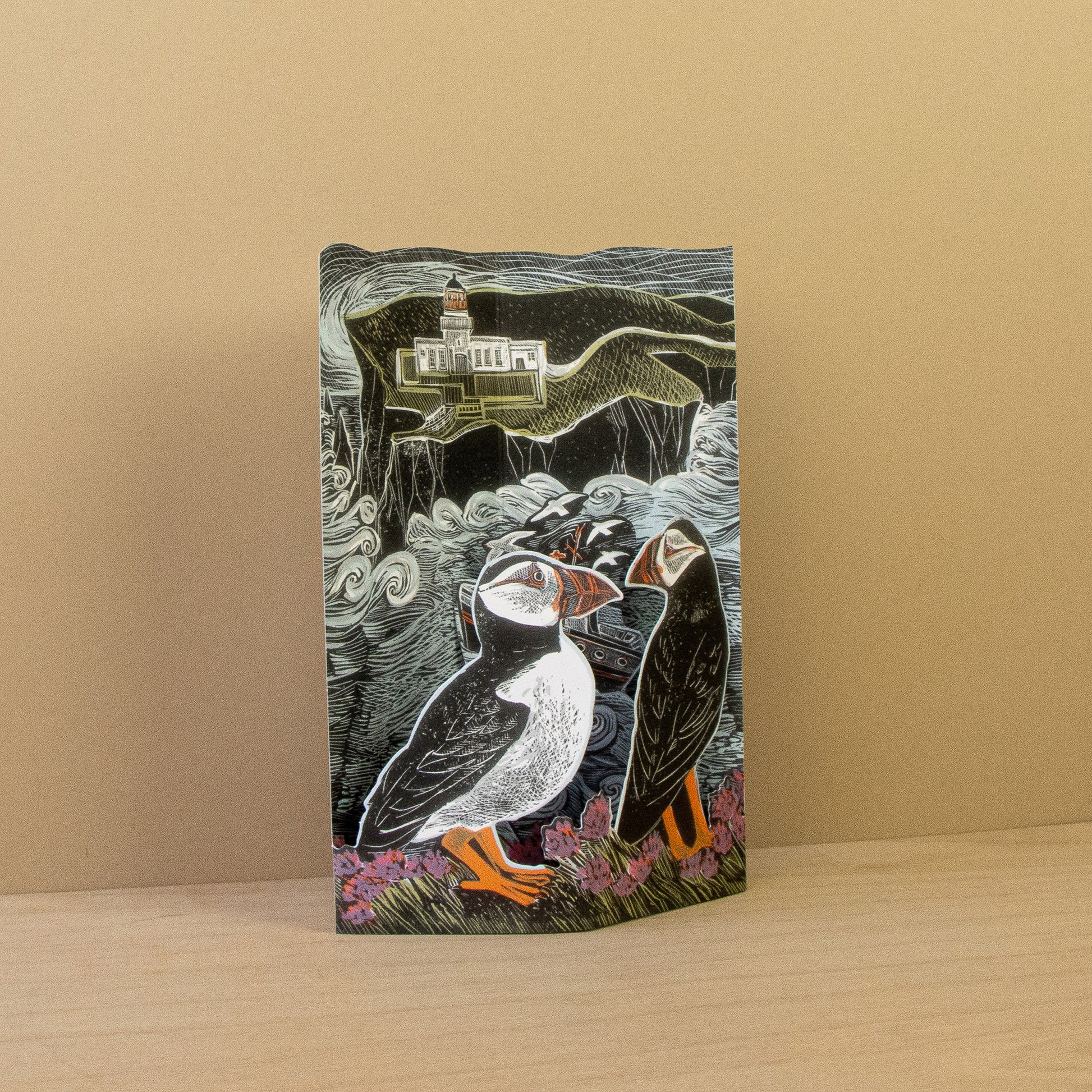 AH3267: Faire Isle Puffins Die Cut die-cut card by Angela Harding.
